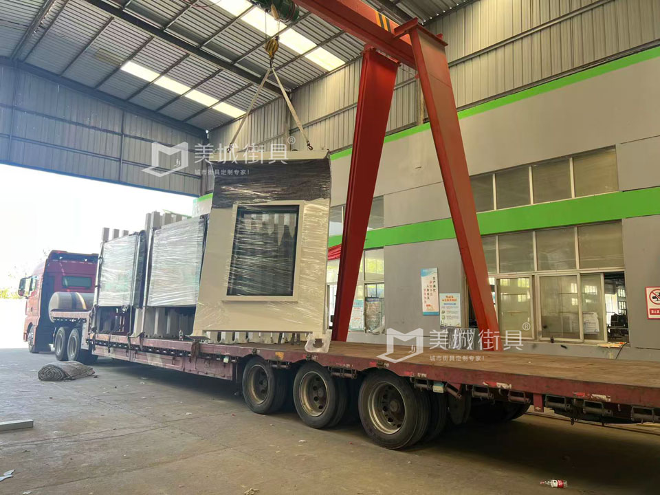 江蘇美城街具為新疆定制公交候車亭第一批發貨案例